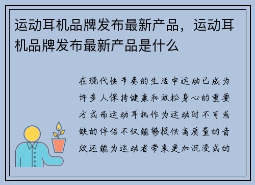 在现代快节奏的生活中,运动已成为许多人保持健康和放松身心的重要方式。而运动耳机作为运动时不可或缺的伴侣,不仅能够提供高质量的音效,还能为运动者带来更加沉浸式的体验。今天,我们很高兴地宣布,备受期待的运...