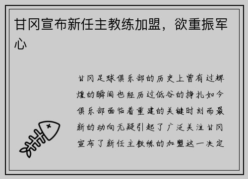 甘冈足球俱乐部的历史上,曾有过辉煌的瞬间,也经历过低谷的挣扎。如今,俱乐部面临着重建的关键时刻,而最新的动向无疑引起了广泛关注——甘冈宣布了新任主教练的加盟。这一决定标志着俱乐部对未来的重新布局,并表...