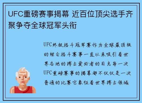 UFC(终极格斗冠军赛)作为全球最顶级的综合格斗赛事,一直以来吸引着世界各地的搏击爱好者的目光。每一次UFC重磅赛事的揭幕,都不仅仅是一次普通的比赛,它象征着世界搏击领域的巅峰对决。此次UFC重磅赛事...